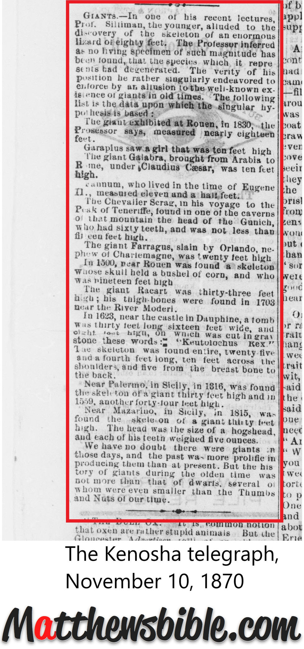 There were giants in those days! This evidence was gathered as testimony to scripture in the face of a fallen world motivated to hide the truth. These items can be downloaded individually or as a group - a zip folder exists on the bottom of page 6. This material will continue to grow.