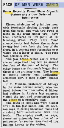 There were giants in those days! This evidence was gathered as testimony to scripture in the face of a fallen world motivated to hide the truth. These items can be downloaded individually or as a group - a zip folder exists on the bottom of page 6. This material will continue to grow.